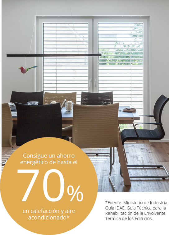 ¿Sabías que las ventanas de PVC Kömmerling combinadas con vidrios bajo emisivos pueden permitirte ahorrar hasta el 70% de tu factura en calefacción y aire acondicionado?. No lo decimos nosotros lo dice el Ministerio de Industria en la Guía IDAE para la Rehabilitación de la Envolvente Térmica de Edificios. Las instituciones públicas están promoviendo la instalación de ventanas de PVC tanto en hogares como en empresas por tratarse de un material eficiente y respetuoso con el medio ambiente.